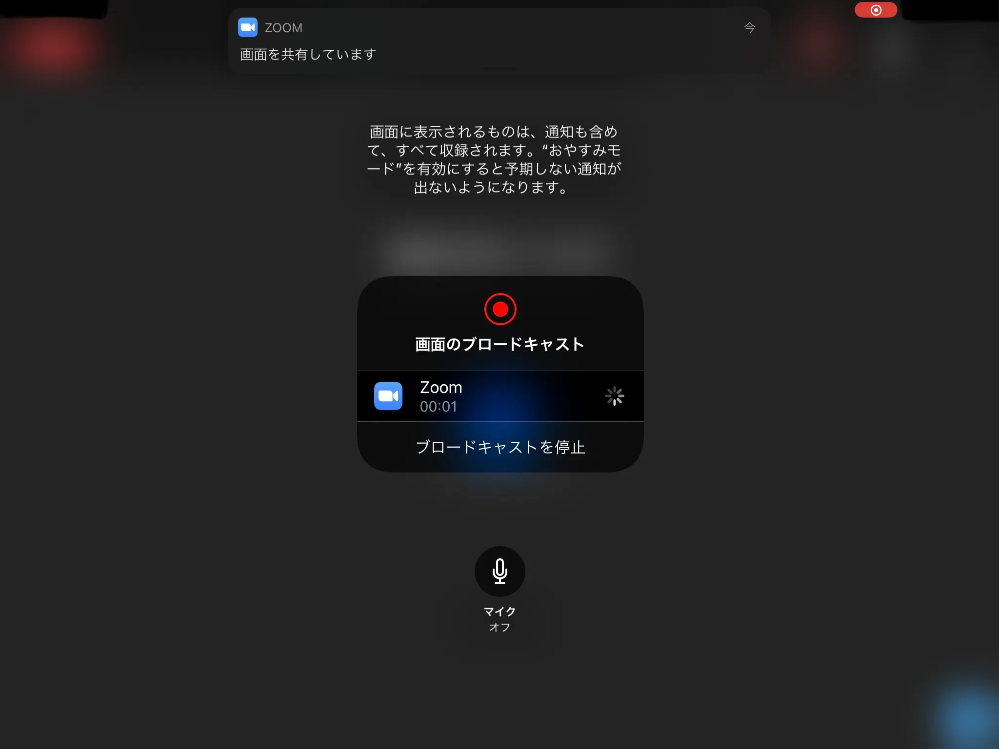 4. iPadで開くアプリをZoomからGoodNotes 5に切り替えると,GoodNotes 5の画面が共有されます.画面共有中は画面右上に赤いマークが表示されます.