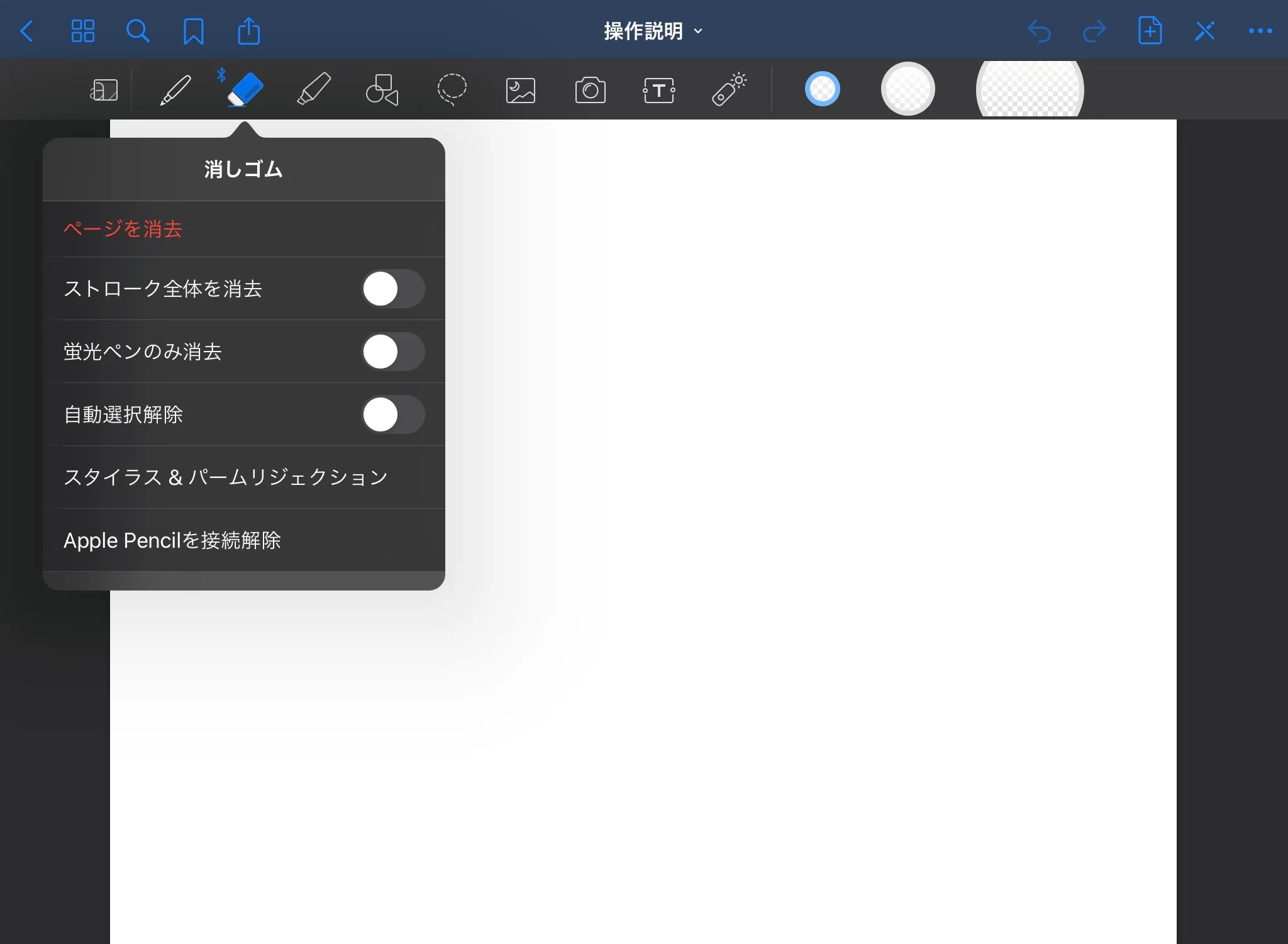 アイコンを長押しすると,下の画像のようにメニューが現れ,ストローク全体を消去したり,蛍光ペンのみを消去したりすることも可能です.
