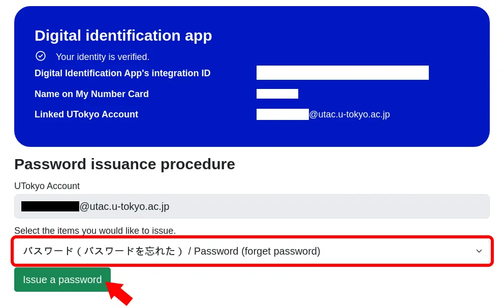 Reissue a password using the UTokyo Account Identity Verification Service