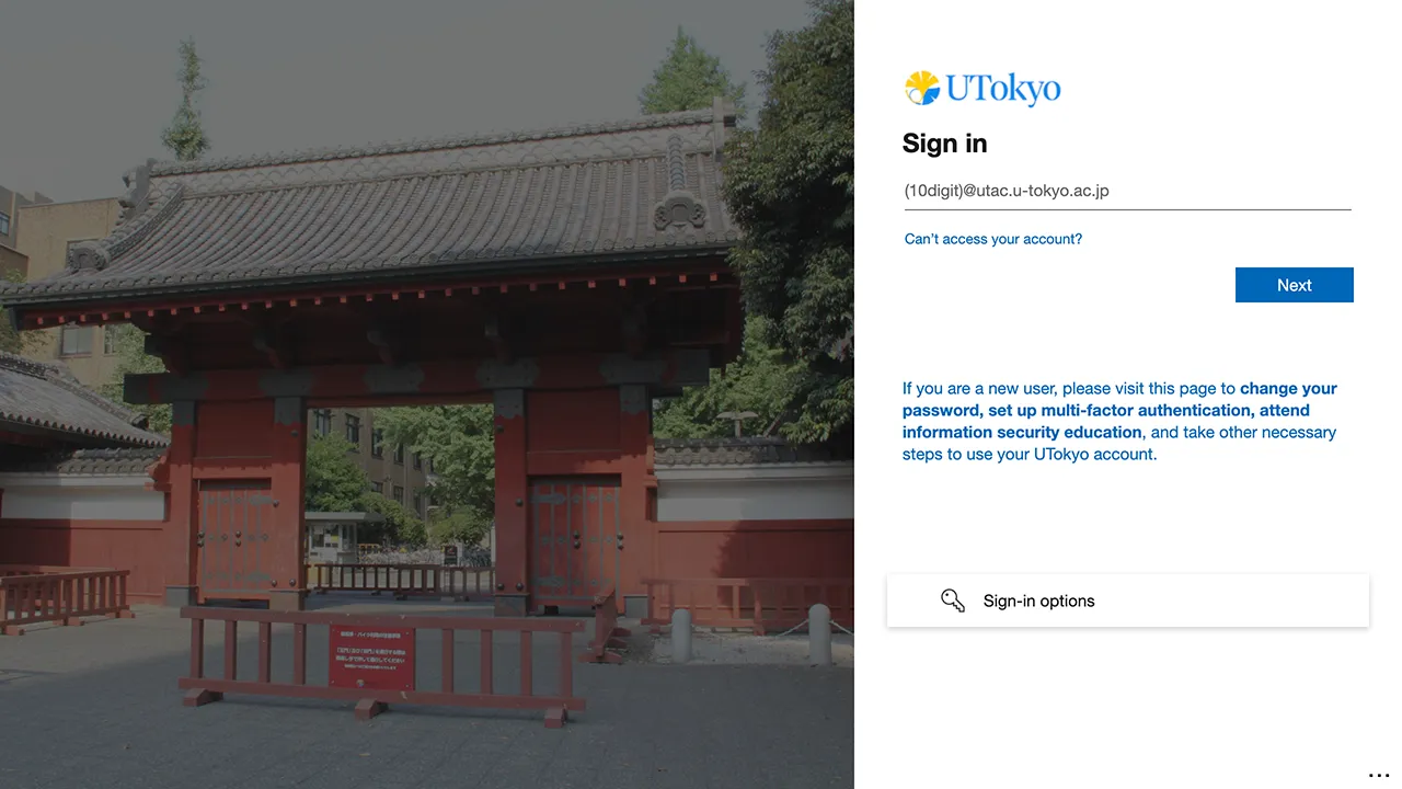 Sign in to the ICT systems with your UTokyo Account
