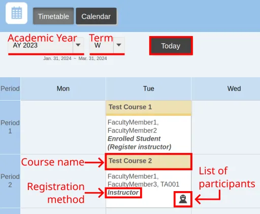 • Clicking the “Today” button will display the timetable for the current term.