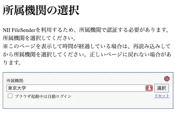 1. NII FileSenderのアップロードページにアクセスしてください.