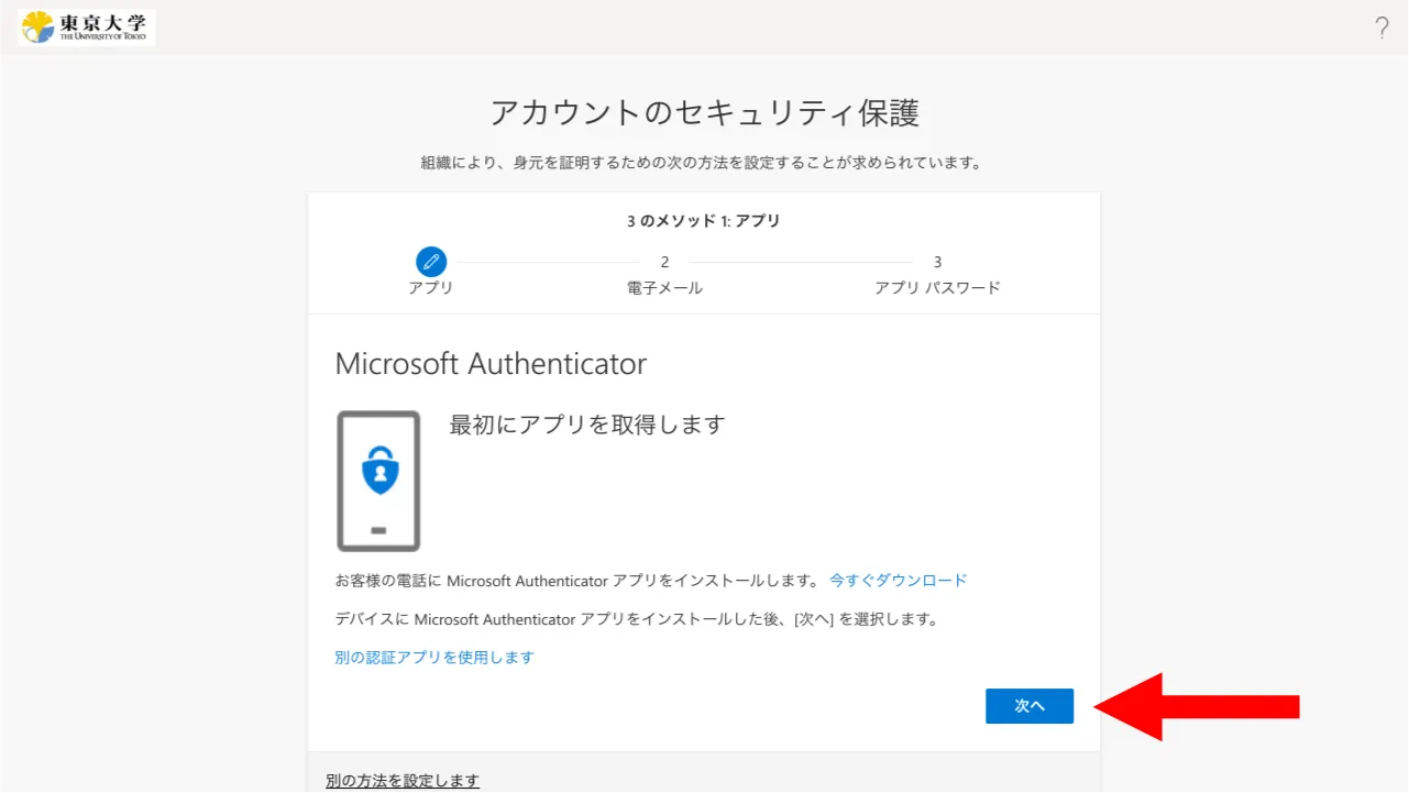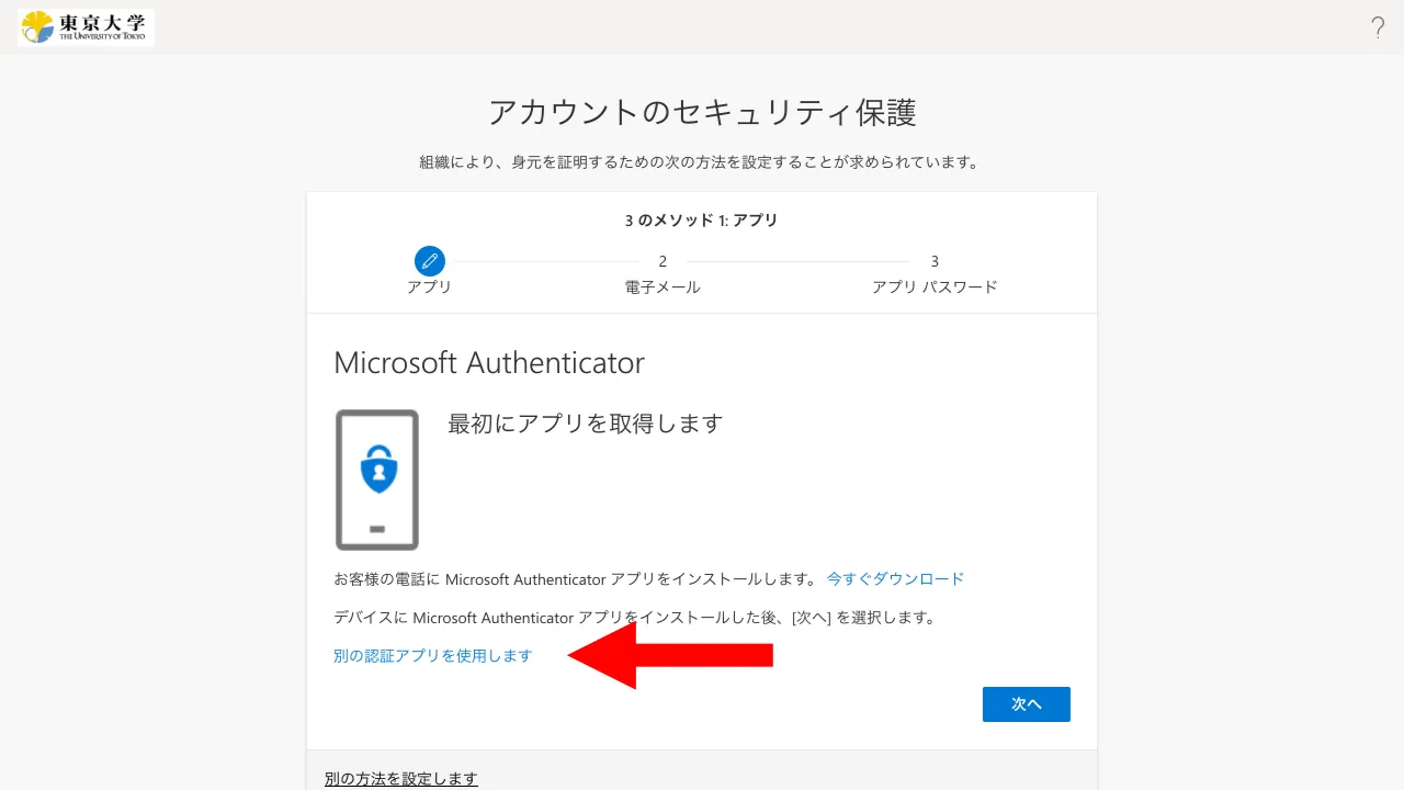 「Microsoft Authenticator」は,Microsoftが提供している多要素認証のための専用のアプリです.UTokyo Accountの多要素認証はMicrosoftのシステムを利用しているため,他の認証アプリよりスムーズに利用できます.2台以上のスマホを持っている場合は,2台目以降のスマホにインストールした「Microsoft Authenticator」を追加の本人確認方法として,手順2で登録することもできます.