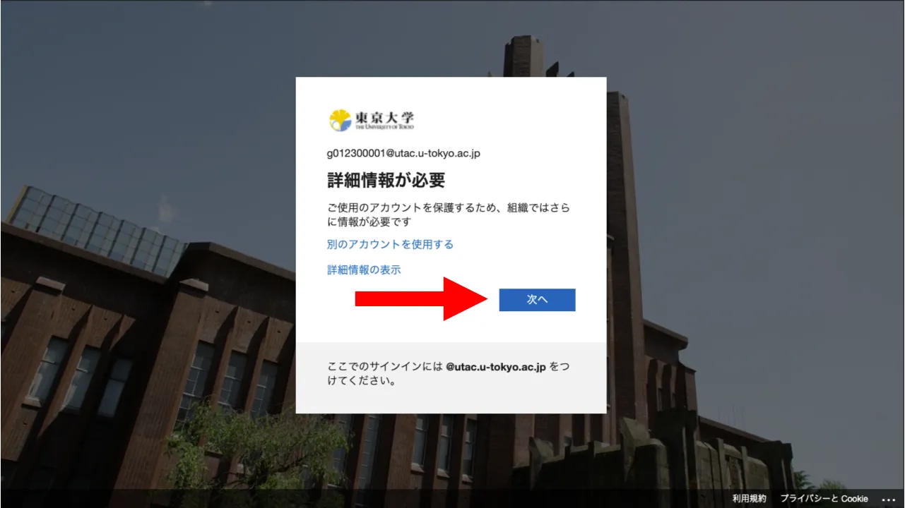 2. UTokyo Account(10桁の共通ID+@utac.u-tokyo.ac.jp)とパスワードを入力してログインしてください.