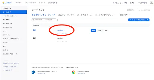ミーティングの編集,管理をする画面は,それぞれ次のようにして開きます.