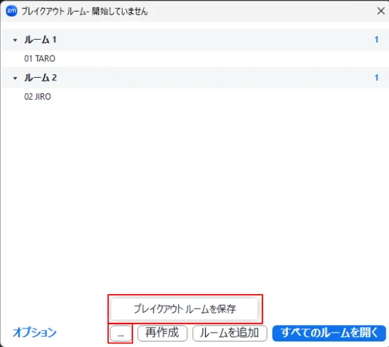 - 表示されるウィンドウ下部の「…」から「ブレイクアウトルームを保存」を押してください.